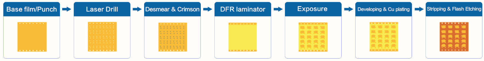 Our company with the whole process in the area of COF package solution integration ability, in the wet process equipment and quality inspection equipment, the process of the system of governance tools, and the whole Cheng Fucai, material is rich in experience, at the same time in the single side COF package, double-sided COF package, etching process, SAP process all have practical experience in mass production, looking forward to contributing to the development of domestic COF package industry.